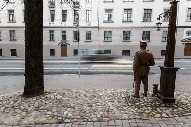 А в бронзе у фасада возник городовой, И зорко наблюдает блюститель боевой.