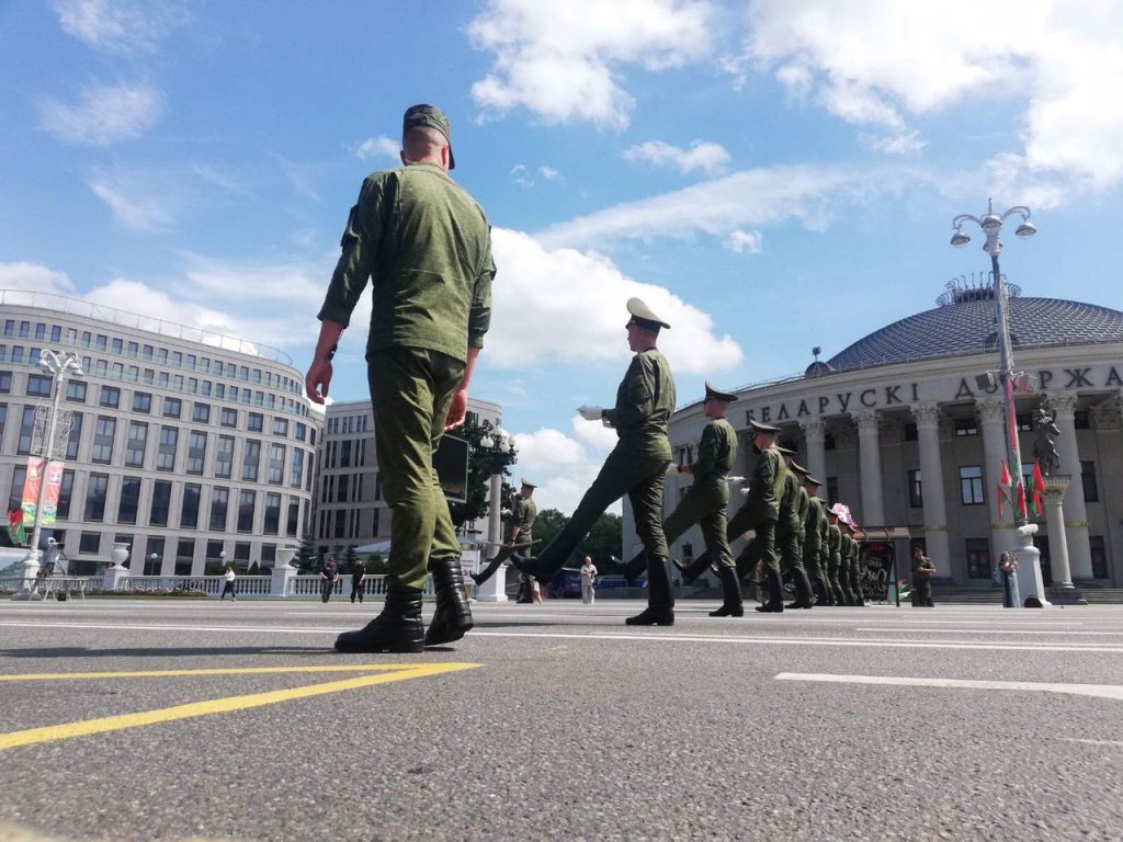 А вот как прямо сейчас проходит репетиция встречи Президента Республики Беларусь Александра Лукашенко. Напомним, колонна будет двигаться от Государственного цирка до монумента Победы.