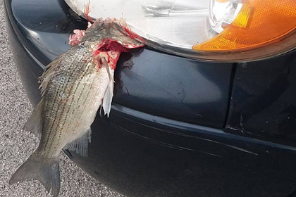 В Теннеси белый окунь упал с неба на машину и застрял в бампере, передает The Charlotte Observer.