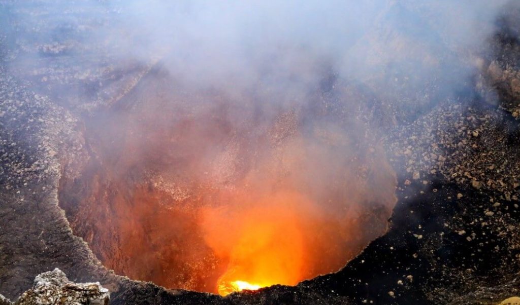 На вершине находится активное лавовое озеро в пределах его кратера диаметром 200 м (на переменной глубине от 100 до 50 м и озеро диаметром от 30 до 50 м), которое попеременно поднимается вверх и вниз. Озеро имеет интенсивные выбросы вулканических газов, которые часто сопровождаются слабыми извержениями.