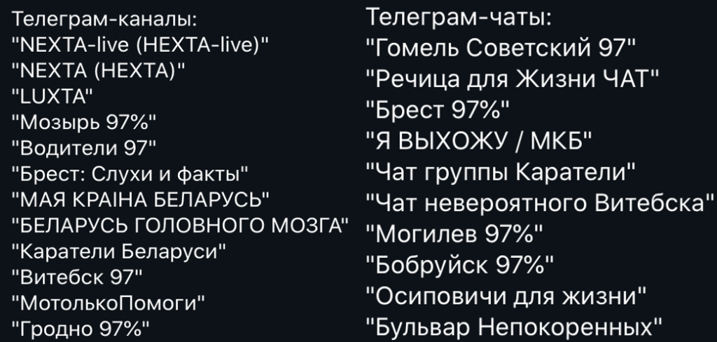Более того, в один из списков попал Telegram-канал «NEXTA» и даже его логотип и водяной знак, который администраторы ставят на публикуемые фотографии.
