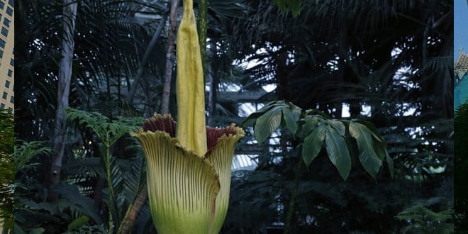 По данным Ботанического сада США, трупный цветок встречается крайне редко, в дикой природе их осталось менее 1000. Он может вырасти до 12 футов в высоту, а цветение занимает около десяти лет, за это время он испускает свой необычный запах, привлекающий опылителей, а затем очень быстро умирает.