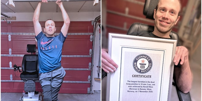 Норвежец побил рекорд Гиннеса по вису на турнике более чем на две минуты.