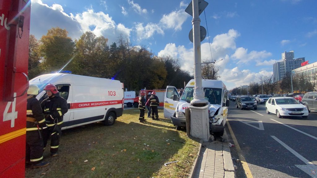 Сегодня днём в Минске на проспекте Независимости произошло серьёзное дорожно-транспортное происшествие — согласно информации от очевидцев происшествия, в районе парка Челюскинцев маршрутное такси на скорости врезалось в столб.