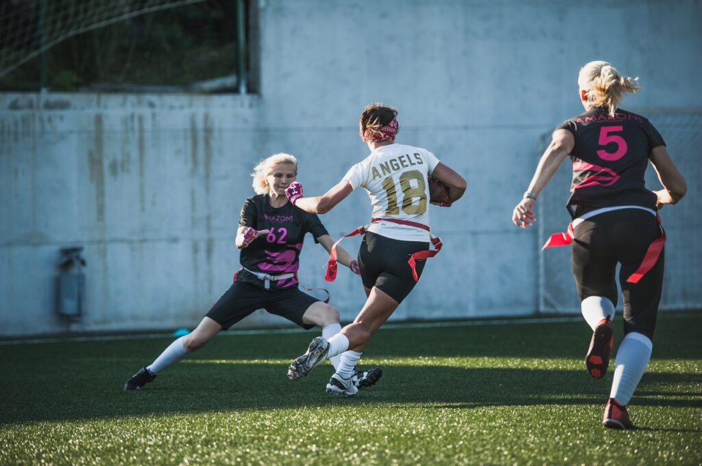 С изданием 024.by пообщались также спортсменки из флаг-футбольного клуба «Ангелы». Как уже говорилось выше, флаг-футбол бесконтактная версия американского футбола, где, для того чтобы остановить соперника, достаточно стянуть у него «флаг» — ленту, закреплённую на специальном поясе. Девушки поделились, тем, что привело их в этот необычный спорт: