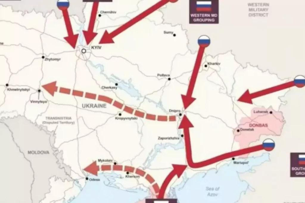 Министерство обороны Великобритании опубликовало карту, на которой изображен план вторжения Российской Федерации на территорию Украины.