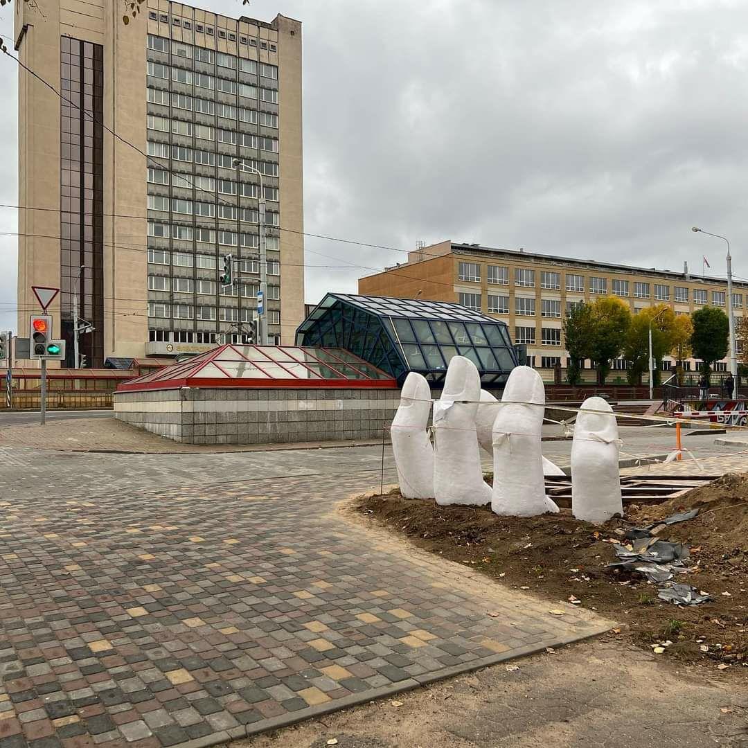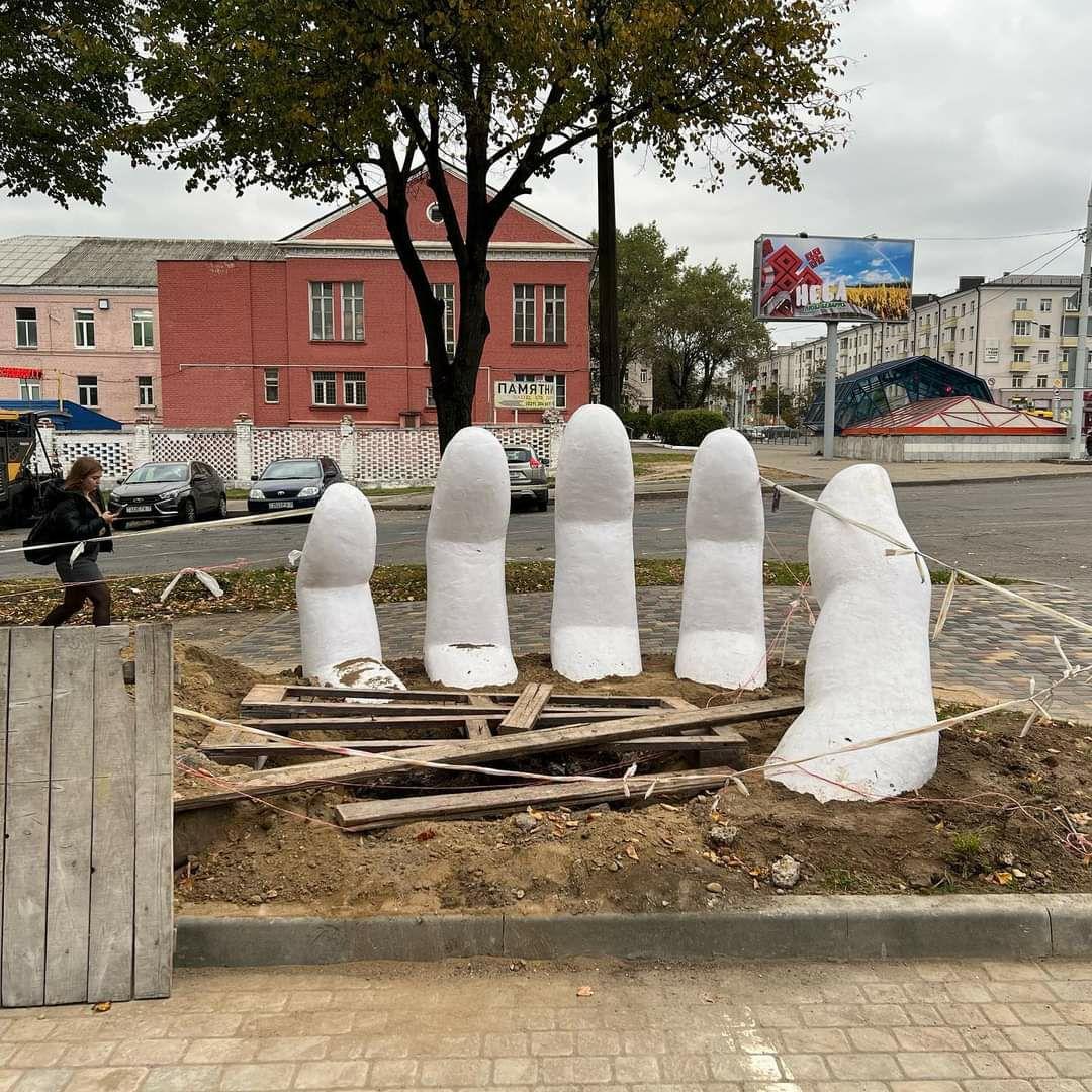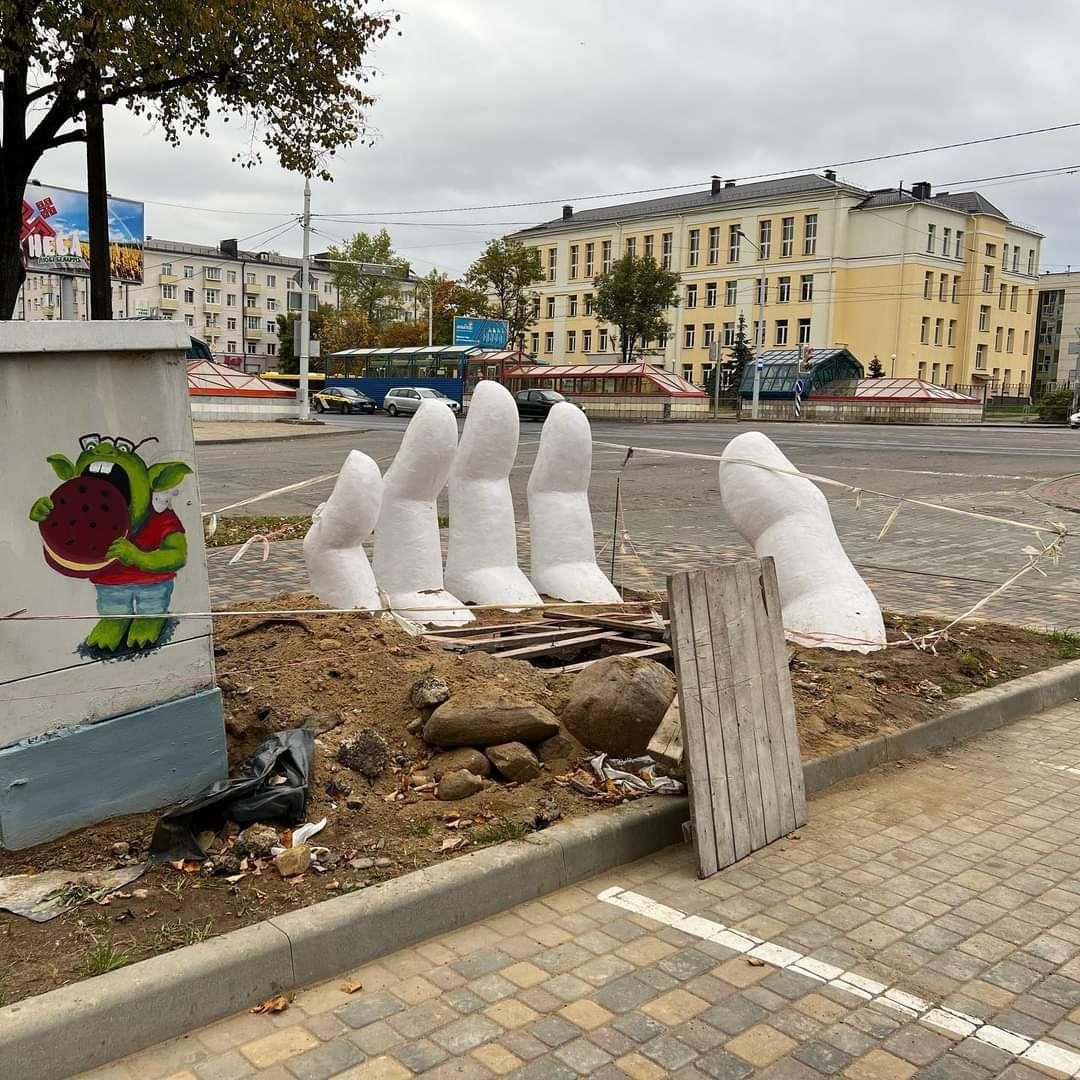Очень необычная скульптура появилась в белорусской столице — из земли торчит человеческая рука. На интересный арт-объект внимание обратил Телеграм-канал «Тропинки Беларуси», там фотографии руки.