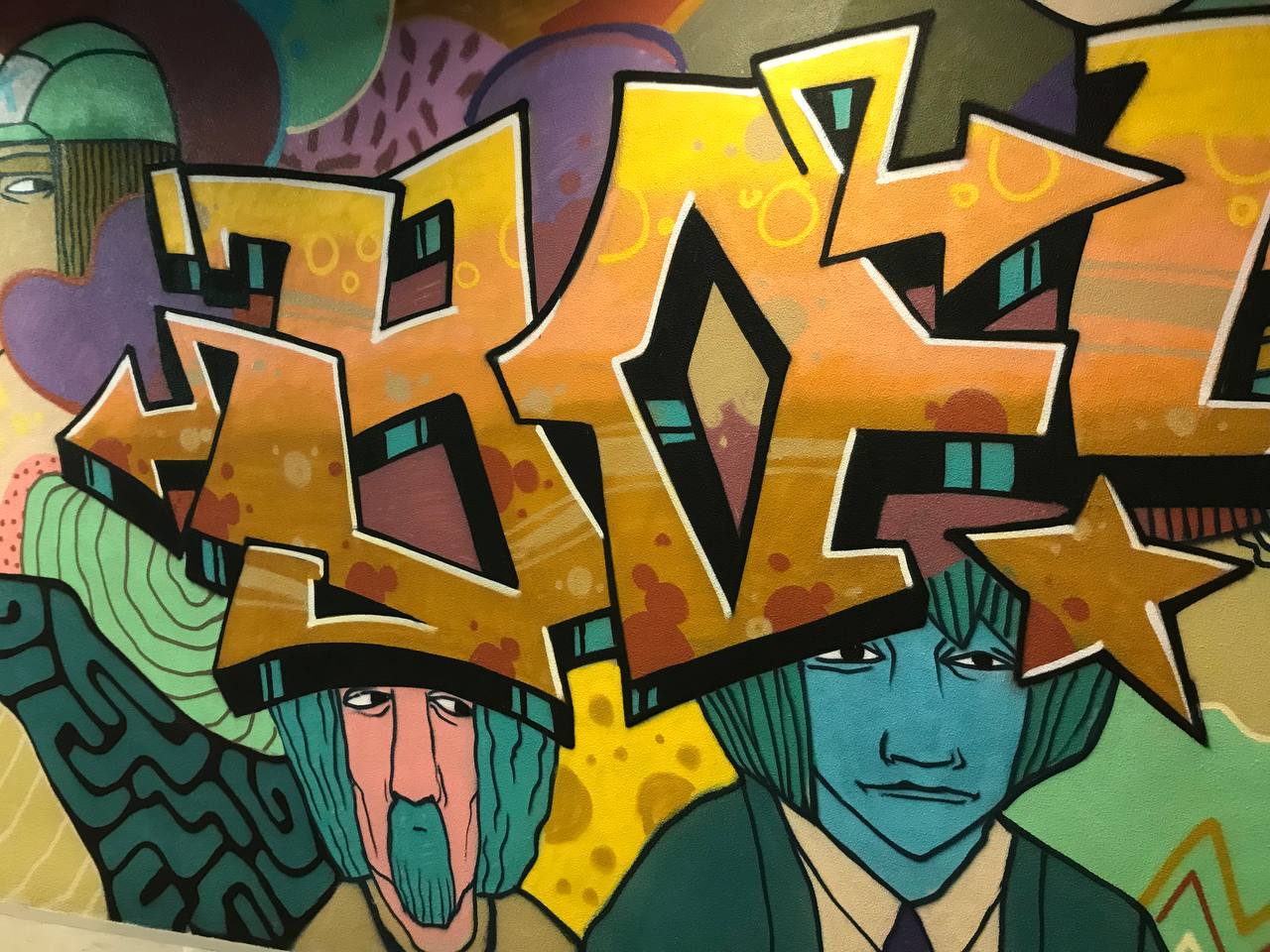 Немного подробнее остановимся на дизайне интерьера нового фудмолла. Что ж, тут стоит отметить, что создатели постарались на славу и действительно заморочились над созданием оригинальной атмосферы. Всё пространство выполнено в едином стиле, а атмосфера очень стильная и современная: много инсталляций, живые растения, а также граффити. Всё это создаёт уютную обстановку и располагает к приятному времяпрепровождению.