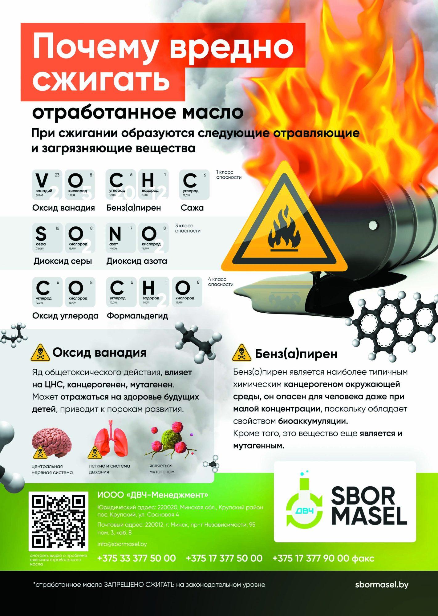 Избегайте сжигания масел, не используйте их в хозяйственных целях.