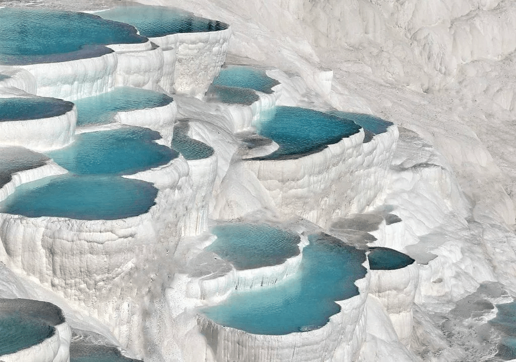 Яркие кадры с термальных источников в провинции Денизли в юго-западной части Турции наверняка многие видели в аккаунтах блогеров или на брошюрах туристических агентств. Источники известны потрясающими белоснежными травертинами и террасными водоёмами. К слову, некоторые думают, что купаться можно прямо на самих террасах, однако травертины с бирюзовой водой имеют совсем другой состав и купаться здесь строго запрещено. Для оздоровления в провинции есть специальные природные бассейны.
