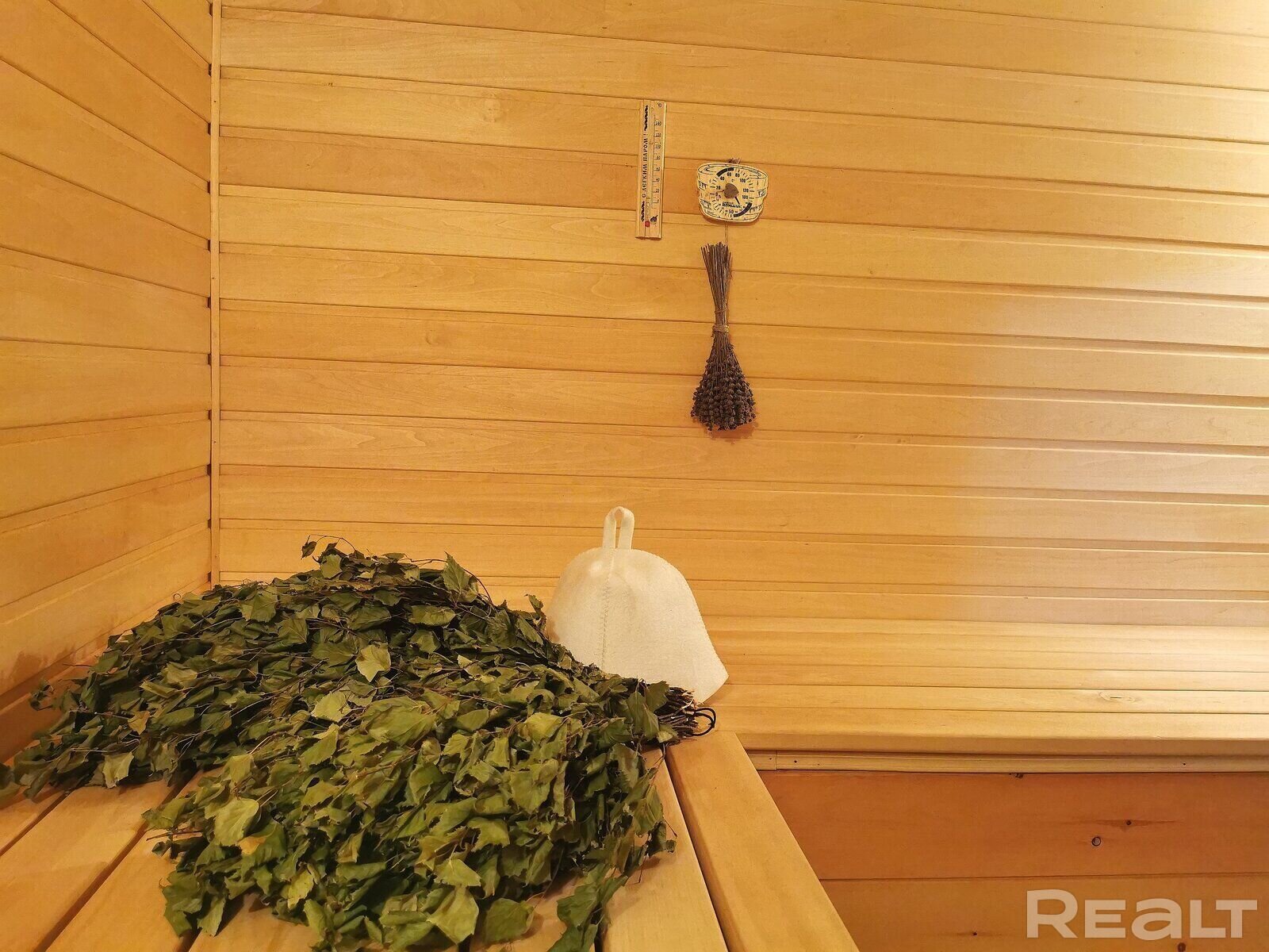 На участке, площадь которого составляет 20 соток, есть хозпостройки, навес для машин, и баня, Realt.by.