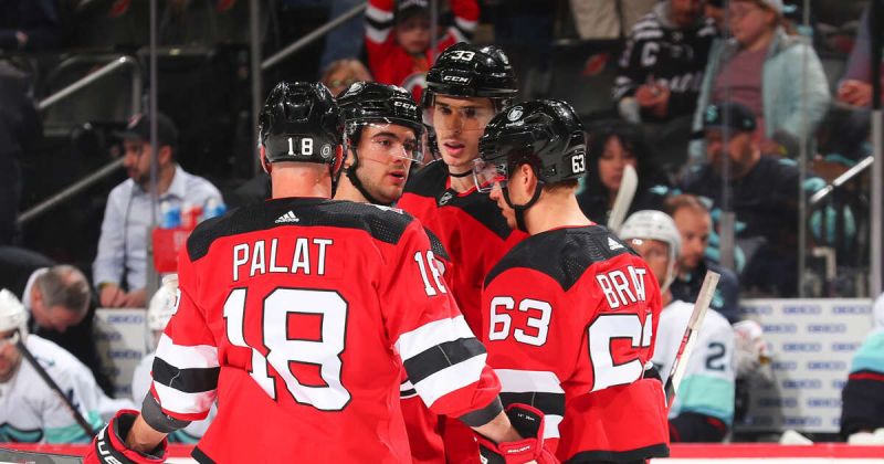 Авторами результативных бросков в составе «дьяволов» выступили чех Ондржей Палат (1-я), открывший счет в данном матче, канадец Доусон Мерсер (34-я в меньшинстве) и финн Эрик Хаула (24-я в большинстве и 55-я в пустые ворота), последний гол которого установил окончательные цифры на табло.
