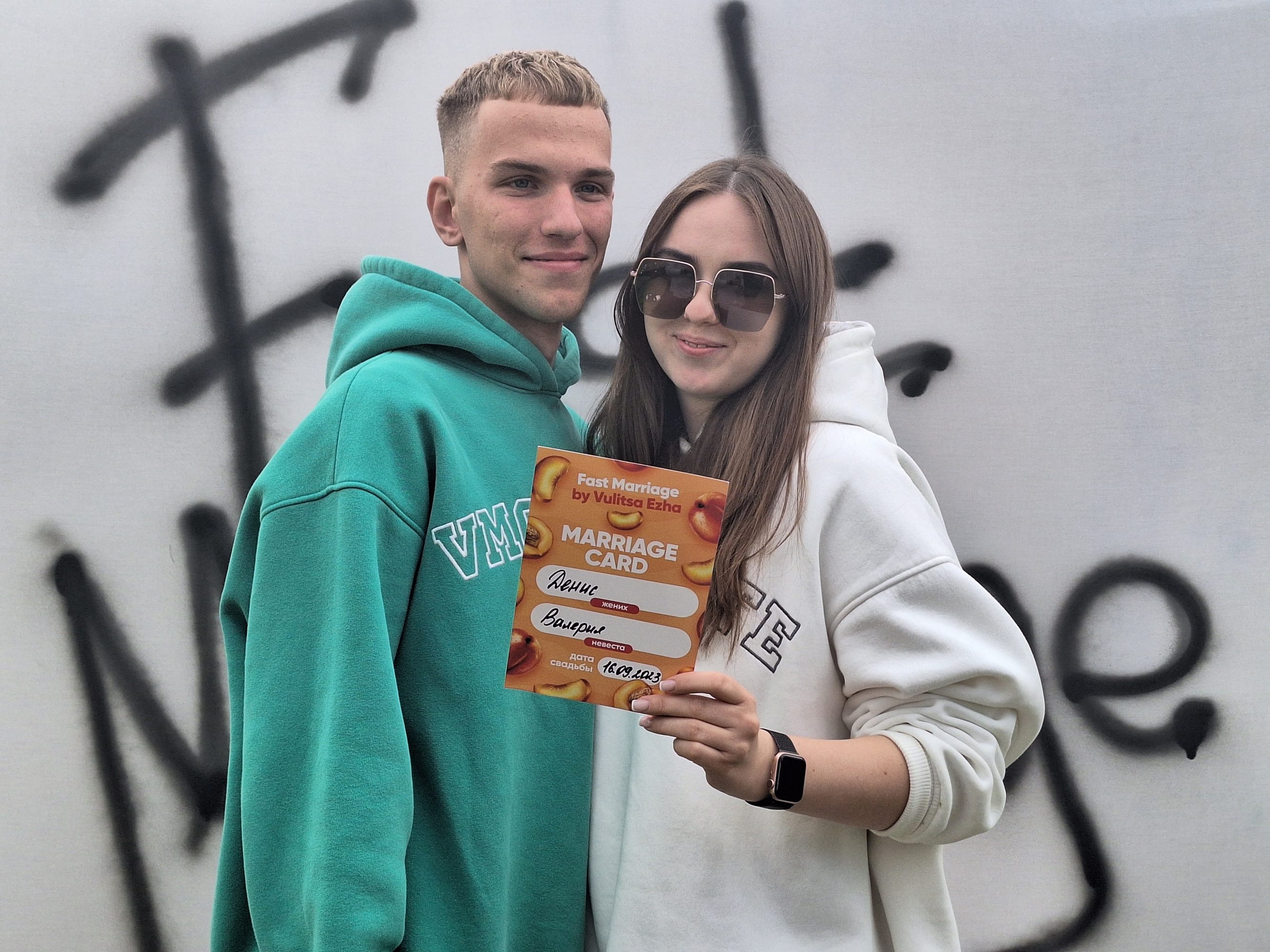 Первой такой парой стали минчане Денис и Валерия. Рассказывают, что они вместе более полутора лет. Познакомились, когда у девушки убежала на прогулке одна из двух собак. Неравнодушный незнакомец Денис помог ее найти, после чего молодые люди не расставались.