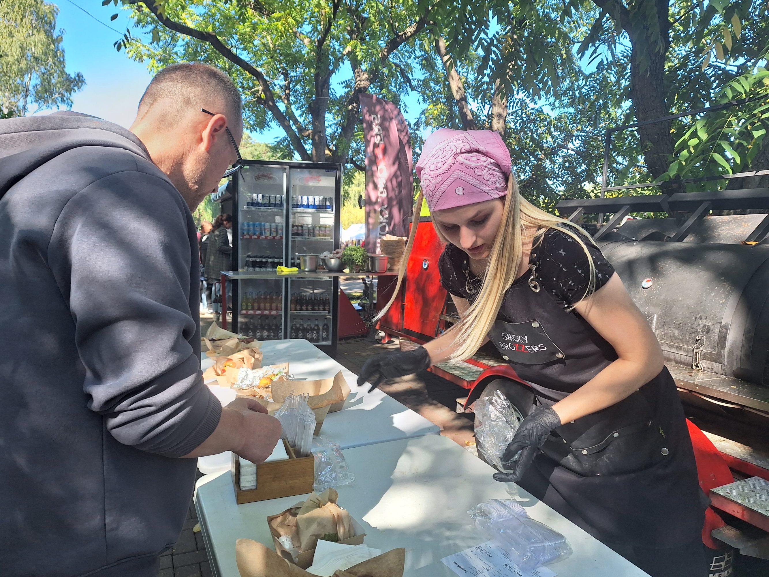 У трака с мясными блюдами звучат возгласы в очереди: «О, берем это! » Так реагируют на хот-доги с рваной говядиной от Smoky. Brozzers, когда сотрудница Яна рассказывает нам о бургерах, ребрах, стейках из свинины, кукурузе, битых огурцах и бэйби-картошке.