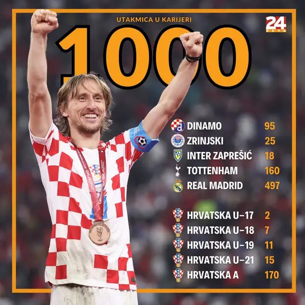 В 2022 году Модрич стал первым футболистом, который сыграл на чемпионатах мира в трех десятилетиях – два матча на ЧМ-2006, три встречи на ЧМ-2014, семь игр на ЧМ-2018 и столько же на ЧМ-2022. На чемпионатах Европы он также выступал в трех десятилетиях – в 2008, 2012, 2016 и 2020 годах.