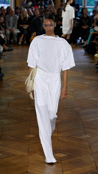 Но по настоящему «отожгли» Saint Laurent и Coperni: брючный костюм отличают естественные складки, появившиеся в результате носки, а прозрачное платье-комбинация словно намекает, что оно было надето женщиной, которая еще не до конца проснулась, и ей нет дела до безупречного вида.