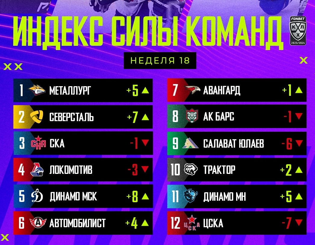 Директорат Континентальной хоккейной лиги опубликовал очередной рейтинг силы, который демонстрирует физическое состояние команды на данный момент.