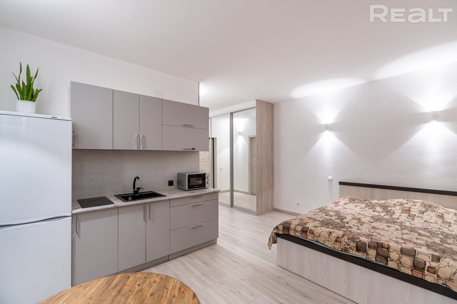 Выгодно отличает это предложение то, что квартира уже готова для проживания, как можно понять из базы Realt.by. Жилье с ремонтом, мебелью и бытовой техникой.