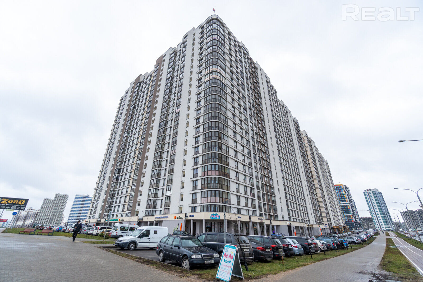 Из инфраструктуры рядом с этой двадцатипятиэтажкой — школа. Можно сходить в кафе или кофейню по-соседству. В шаговой доступности — магазин.