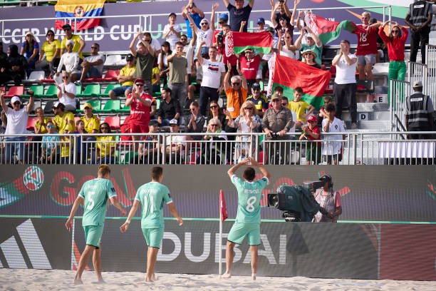 На чемпионате мира по пляжному футболу в Дубае сборная Беларуси одолела в четвертьфинале Португалию со счетом 4:3 и впервые в истории вышла в полуфинал мирового первенства.