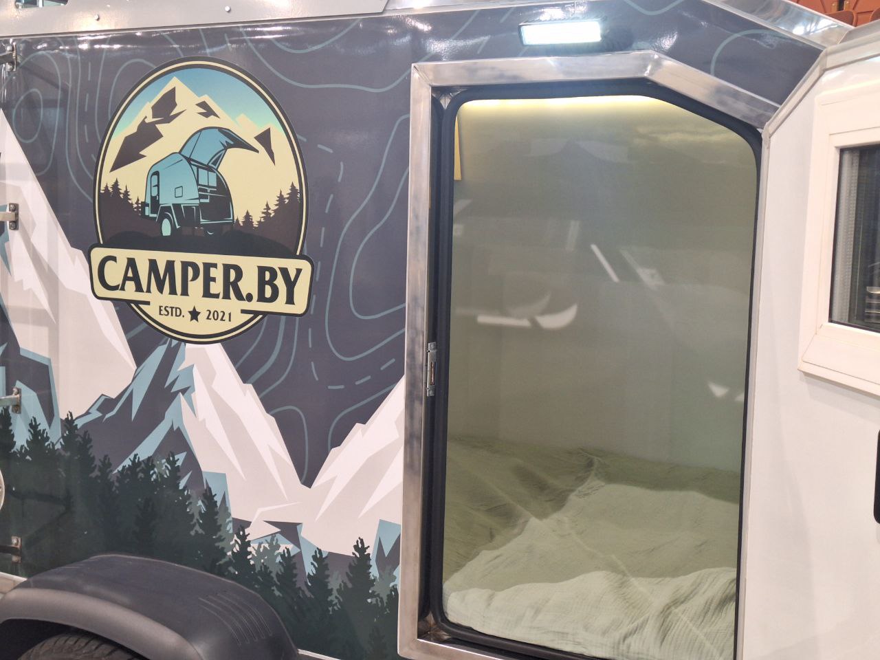 В чем отличие наших кемперов от больших домов на колесах? Они сзади имеют кухню, а внутри спальное место. Есть ящики для хранения одежды и полки для мелочей. Предусмотрено питание на 12 вольт. Наши кемперы изготавливаются в Беларуси из сэндвич-панелей, а не из фанеры, и нержавеющей стали. Они облегченные, могут сохранять тепло зимой и прохладу летом, а также оснащены отопителями. Всесезонность — их главная особенность.
