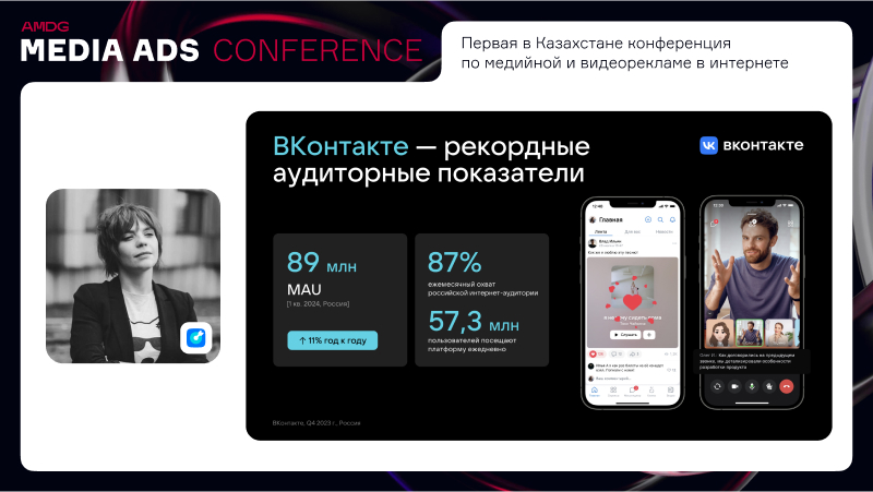 Также Евгения поделилась информацией о медиапроектах VK и форматах медийной рекламы на ресурсах VK Рекламы. Подробнее об этом можно узнать в записи конференции.