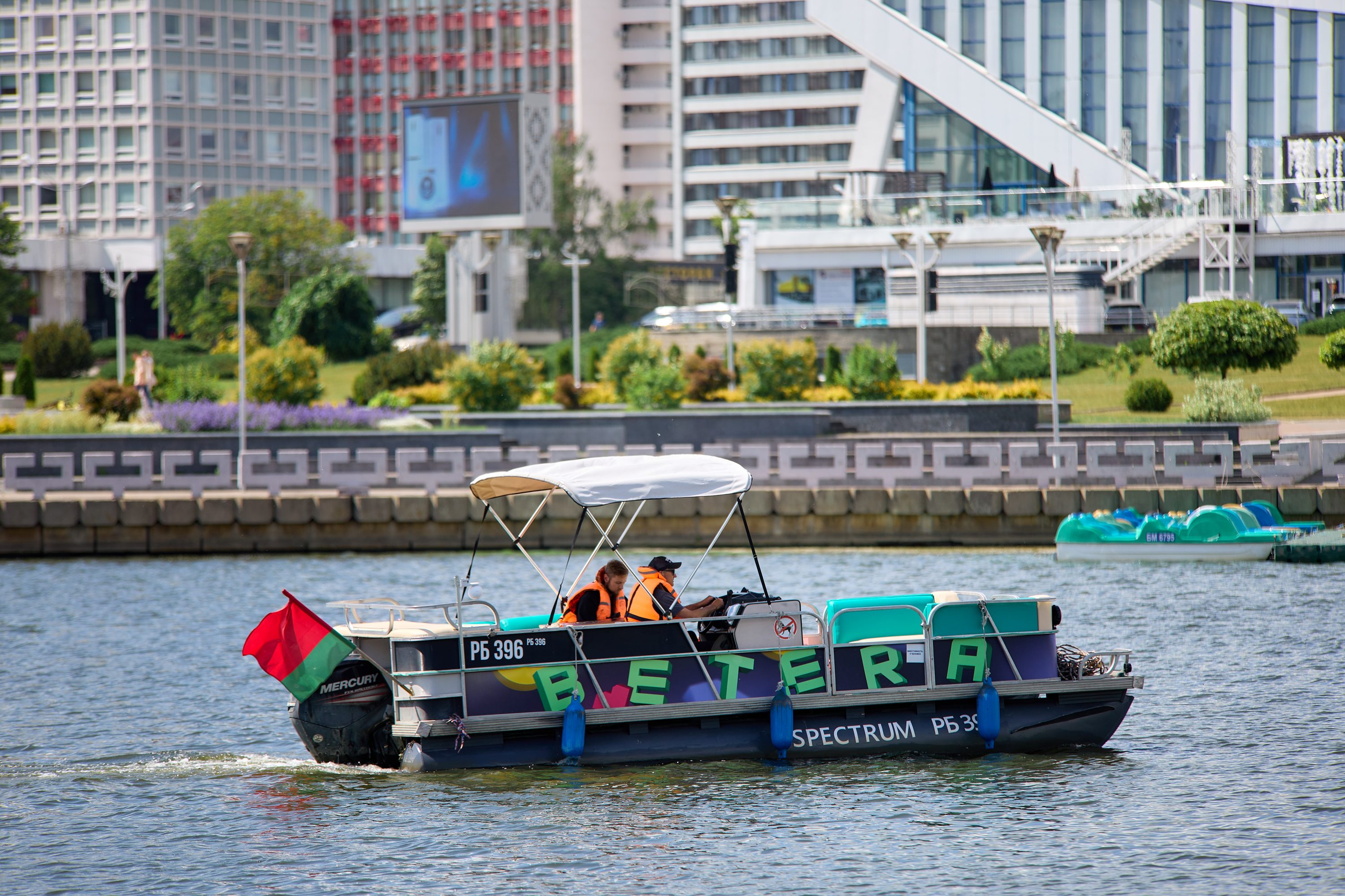 Компания Betera также забрендировала катер Spectrum. Его причал расположился на популярной набережной Минска сразу за Дворцом спорта. Маршрут катера проходит через Троицкое предместье, ул.Зыбицкую, парки им.Янки Купалы и Максима Горького.