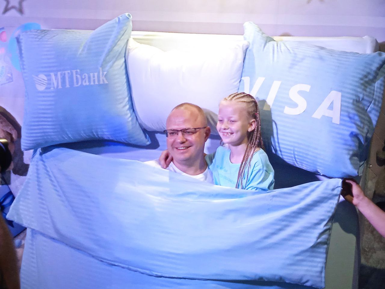 Аня: «Я пришла сюда с братом Арсением, а также с мамой и папой. Нам здесь очень нравится – вкусняшки и газировка. Понравился очень фокусник и мыльные пузыри. Ждем, когда будут бои на подушках и мультик».