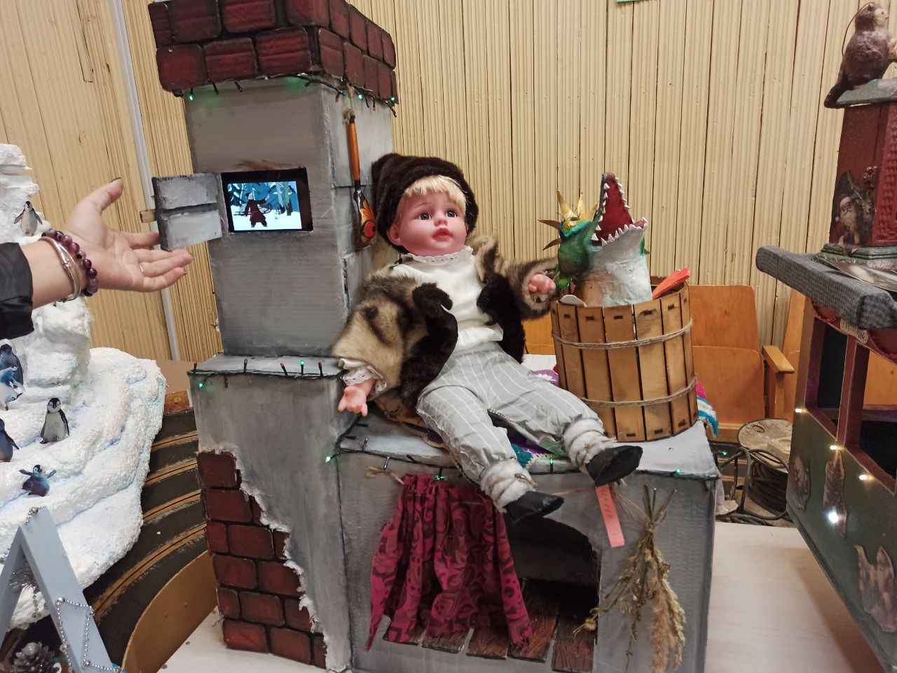 Особое внимание привлекали экспонаты, выполненные с использованием современных технологий. Так, в работе по мотивам сказки «Емеля со щукой», представленной преподавателем Могилевского государственного экономического промышленно-технологического колледжа Данутой Чехострашевской, экран, встроенный в трубу печи, демонстрировал мультфильм. Эта идея реализована с использованием старого мобильного телефона, который включается при открытии дверцы. Емеля и печь выполнены из картона в техниках папье-маше и аппликации.