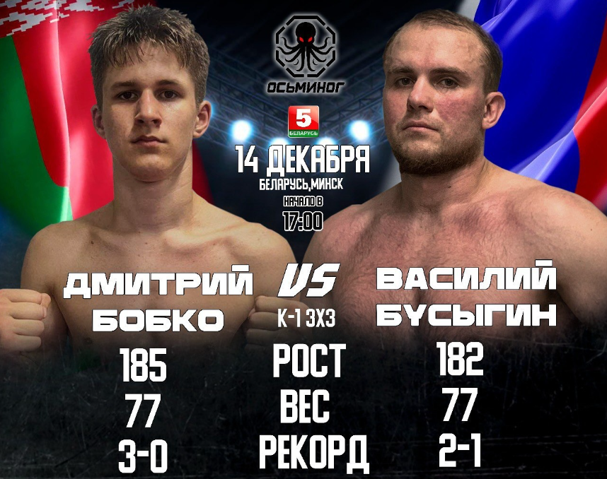 Вторая пара бойцов: весовая категория до 77 кг., Бобко Дмитрий из Минска и Бусыгин Василий из Москвы.