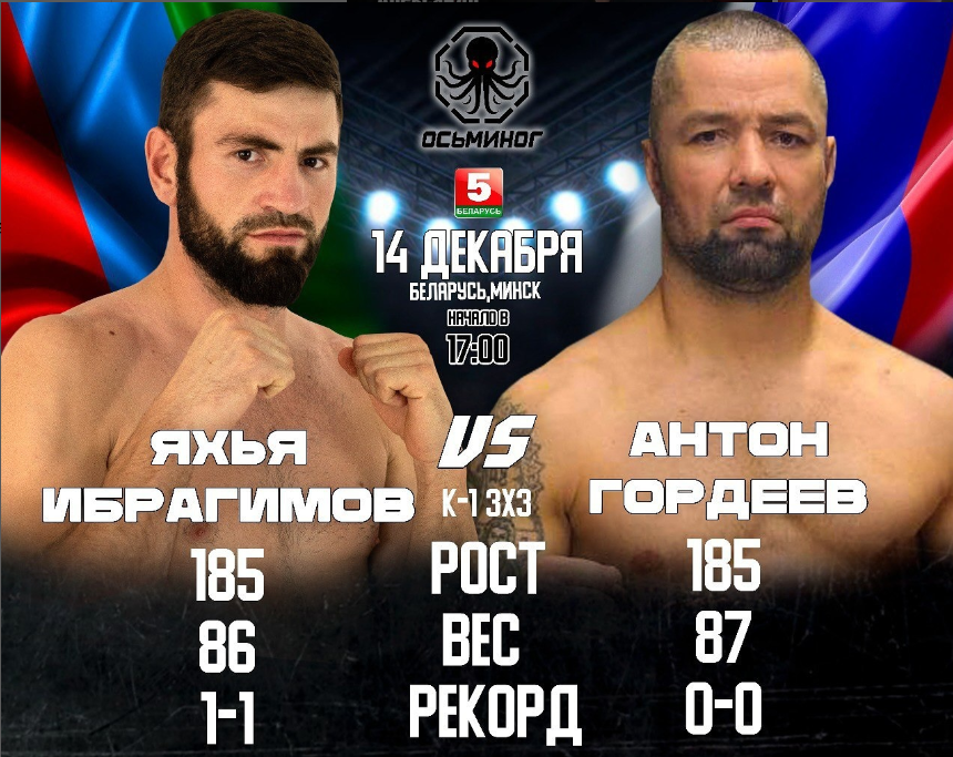 Шестыми на ринге показались Яхья Ибрагимов из Дагестана и россиянин Антон Гордеев. Весовая категория до 87 кг, бой по правилам муайтай.