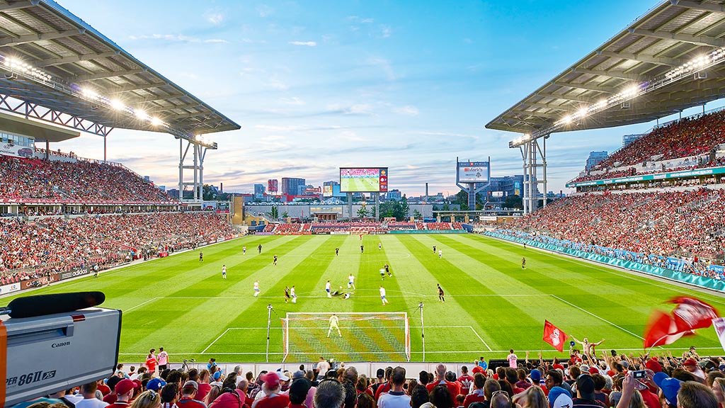 На BMO Field используется гибридный газон, который сочетает в себе натуральную траву и искусственные волокна. Это обеспечивает более прочное и устойчивое покрытие, что особенно важно при интенсивном использовании стадиона. BMO Field расположен в Exhibition Place, развлекательном комплексе на берегу озера Онтарио, недалеко от центра Торонто. Это делает его легко доступным для болельщиков и посетителей.