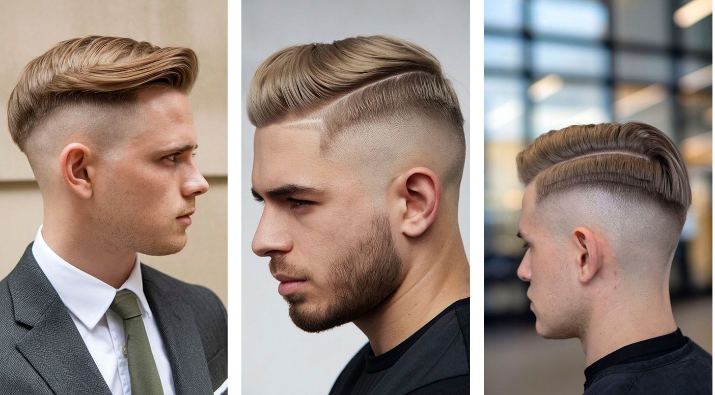 Боковые и задние волосы могут быть коротко подстрижены (например, в стиле фейд или андеркат).