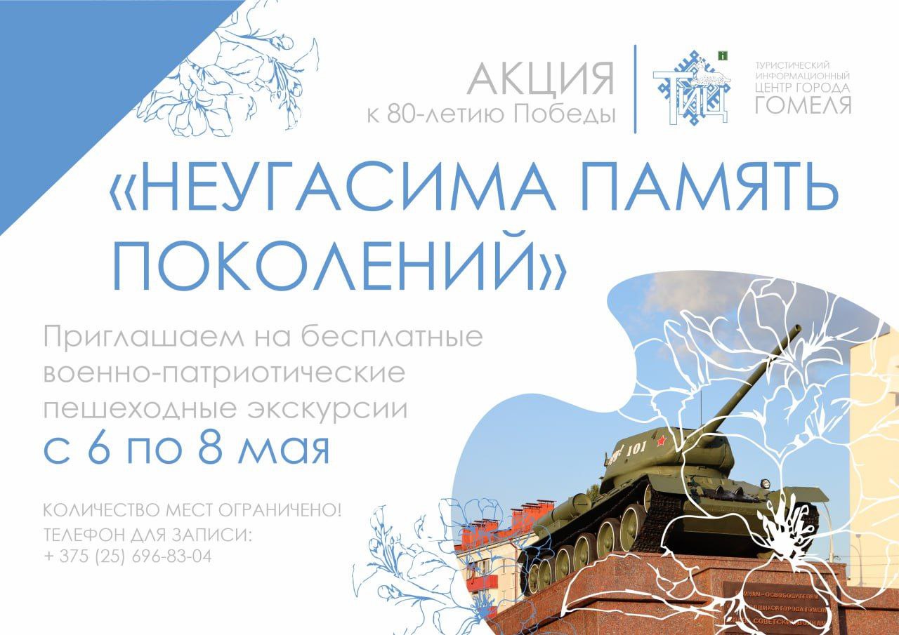 В начале мая у гомельчан и гостей города появится отличный повод выйти на улицу и взглянуть на Гомель не только как на родной город, но и как на живой памятник истории. С 6 по 8 мая Туристско-информационный центр организует бесплатные пешеходные экскурсии, приуроченные ко Дню Победы — дате, которая объединяет поколения и напоминает о цене свободы. Участники смогут пройтись по значимым маршрутам, раскрывающим героическое прошлое города.