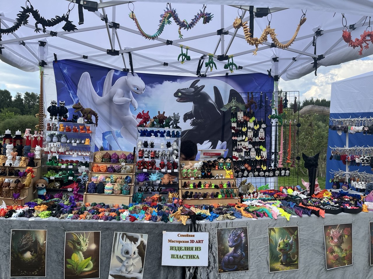 Большая ремесленная зона: необычные аксессуары, текстиль, керамика. В ассортименте также объемные фигурки, созданные с помощью 3D печати. Изготовленные из экологического пластика, они совершенно безопасны для детей. Особенно внимание привлекли игрушки Лабубу, сделанные с помощью 3D-принтера.