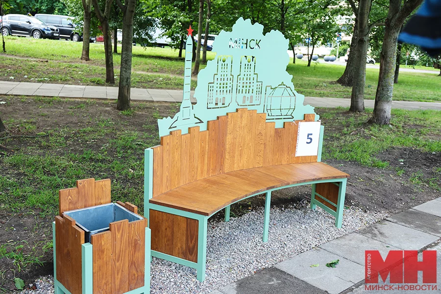 Особого внимания заслуживают арт-объекты в виде скамеек, выполненные в форме узнаваемых минских символов: Национальной библиотеки, монумента Победы и знаменитых «Ворот Минска».