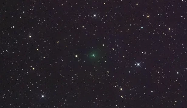 На первый взгляд может показаться, что у кометы отсутствует пылевой хвост. Однако при детальном изучении снимка становится заметна важная особенность: левая сторона кометы несколько ярче правой.