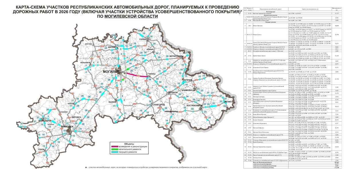 По данным, предоставленным БЕЛТА, обновление ожидает 1 853 км республиканских трасс и 3 338 км местных дорог. Из них 714 км получат современное покрытие, включая участки, ведущие к агрогородкам.