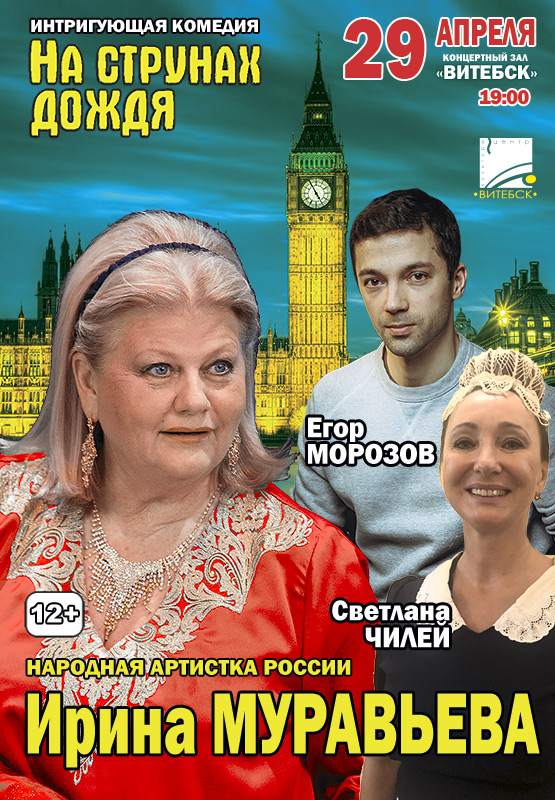 В четверг, 29 апреля 2021 года в 19:00 состоится показ интригующей детективной комедии, с легким юмором и нотками лондонского дождя. В главных ролях известная своими ролями в культовых советских фильмах «Москва слезам не верит» и «Обаятельная и привлекательная» Ирина Муравьева.